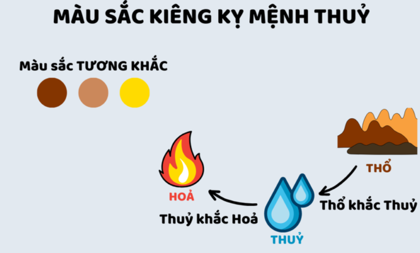 Màu cần tránh (Thổ, Hỏa): Vàng, nâu đất và đỏ, cam.