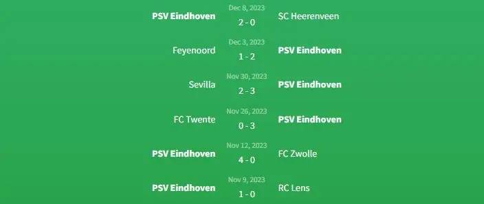Phong độ PSV Eindhoven
