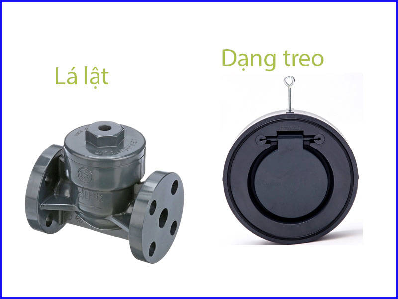 Cấu tạo: Sử dụng một lá van gắn bản lề, nằm bên trong thân van. Khi dòng chảy đi đúng chiều, lá van tự động mở ra. Khi không có dòng chảy hoặc có dòng ngược, lá van sẽ đóng lại nhờ trọng lực.